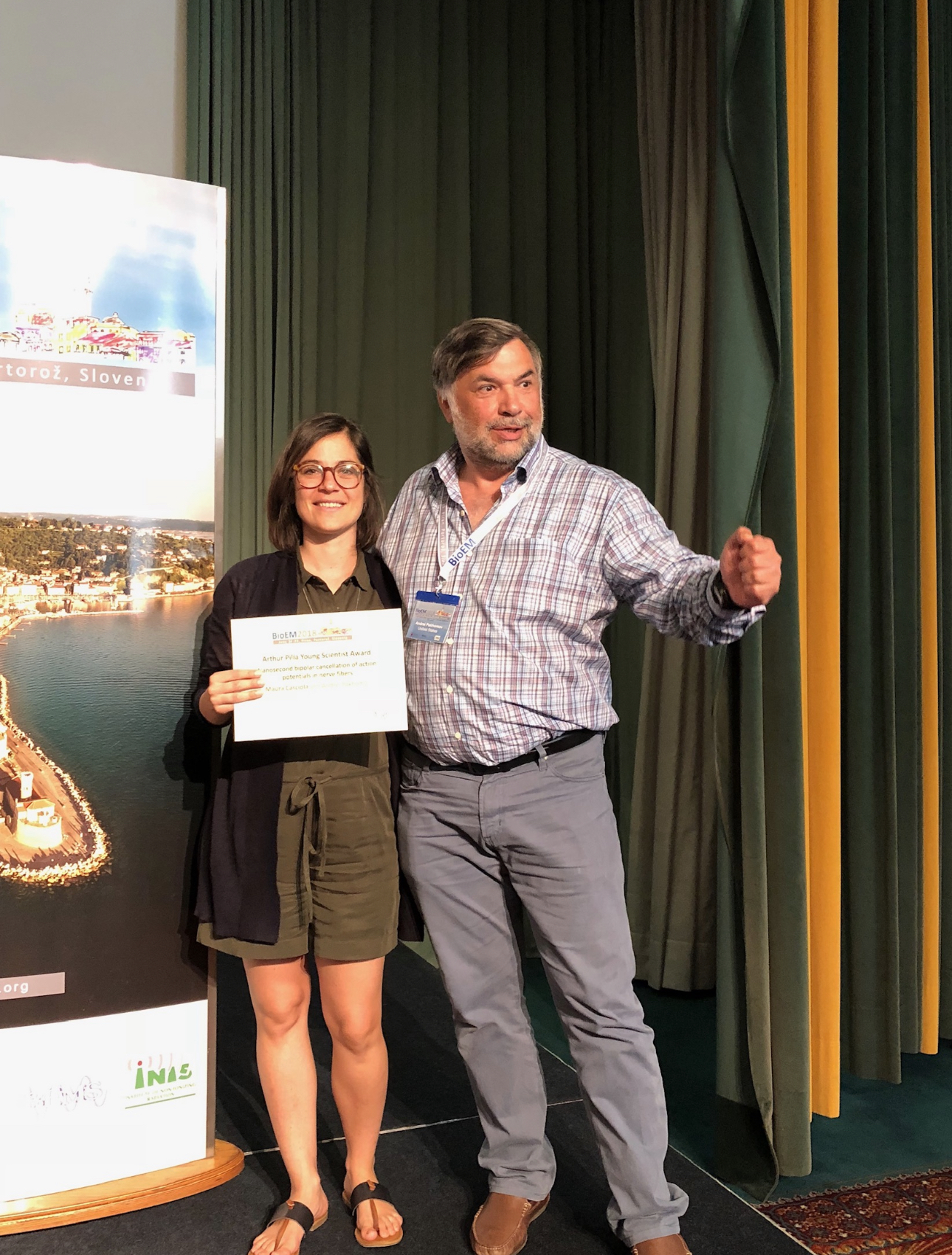Winner of the Dr. Arthur Pilla Research Foundation’s annual Young Scientist Award, Dr. Maura Casciola in 2018 with Dr. Andrei Pakhomov of the Frank Reidy Research Center for Bioelectrics.
